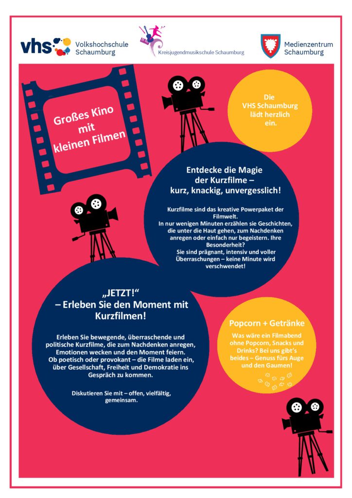 Die VHS Schaumburg lädt herzlich ein zum jährlichen Kurzfilmabend!